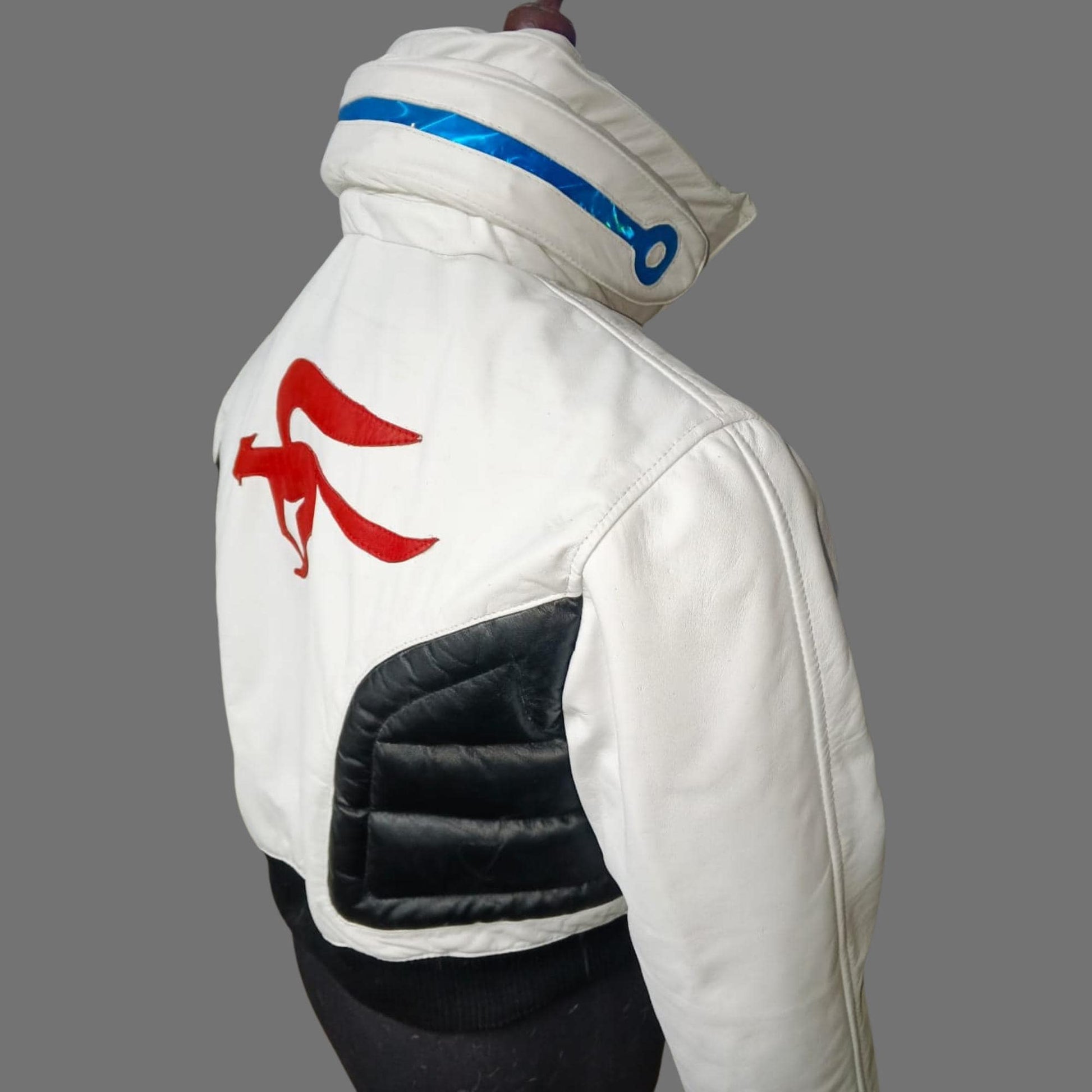 This Cyberpunk LED Collar White Leather Jacket fuses cutting-edge design with premium craftsmanship. Handcrafted from genuine leather, it features a high stand-up collar illuminated by a built-in blue LED strip, paired with bold black quilted panels and striking red embroidered fox emblems. Whether you’re making a statement at a cosplay event, festival, or on the streets, this jacket commands attention.